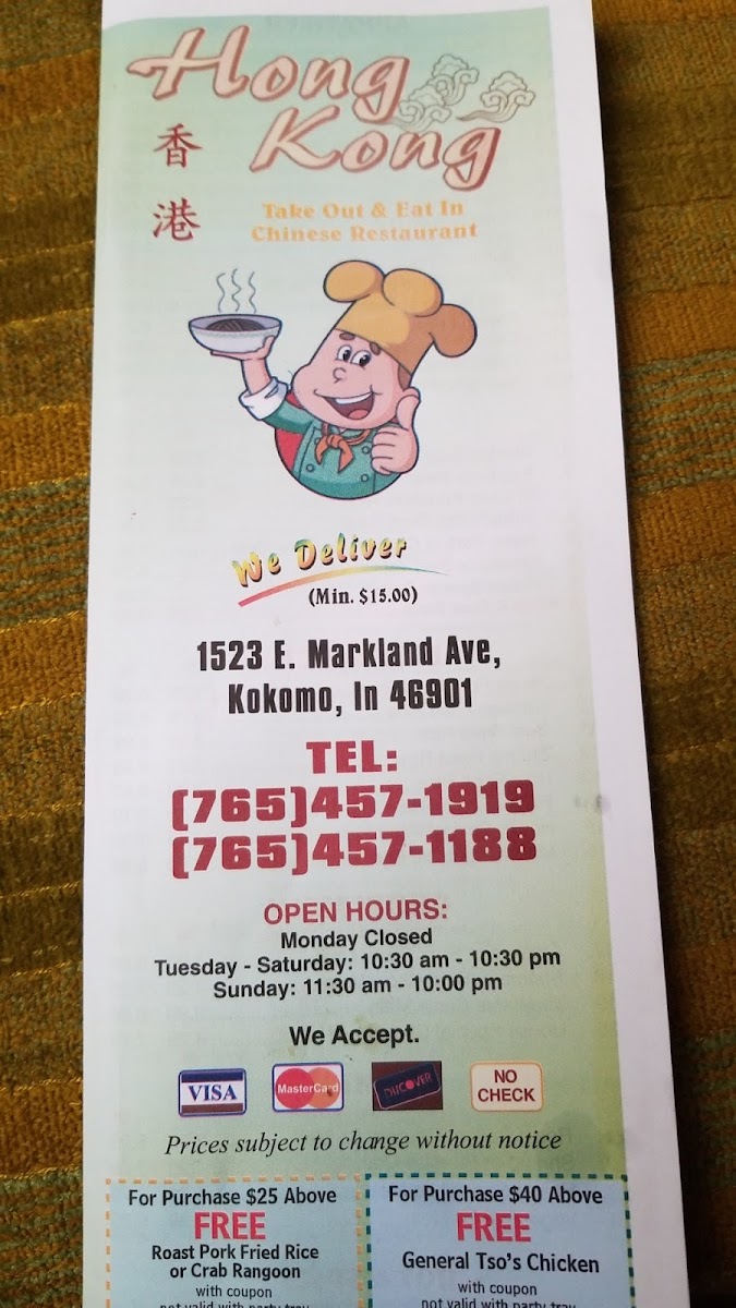 The menu at Hong Kong offers a straightforward, comforting selection of classic Chinese dishes that fit well with casual dining or convenient takeout. Whether you’re stopping by for a quick lunch or a relaxed dinner at home, the menu is designed to satisfy a range of appetites with generous portions and familiar flavors.